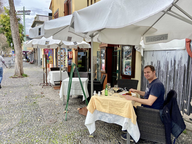 fin de la journée, passage et dégustation dans le caveau d'un producteur local de Madère et retour à l'hôtel pour un plouf dans la piscine intérieure "privatisée", cause mesures sanitaires anti Covid. (c'est pas désagréable, c'est bien la première fois qu'il a un bon coté ce p.... de virus)