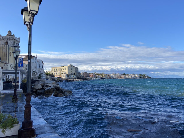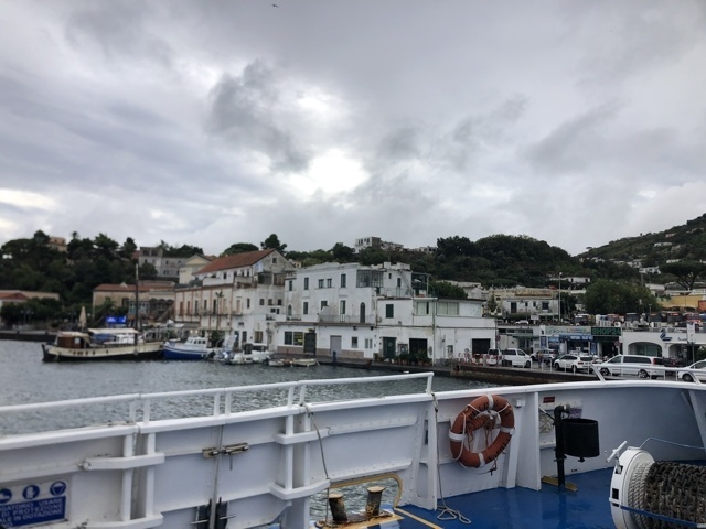 C’est sous une grosse pluie que nous partons à pied rejoindre le port afin d’embarquer sur le ferry qui nous emmènera sur l’île d’ischia.