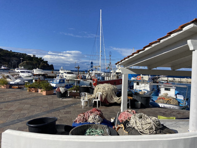 Très bien mangé, sur le port de Forio la ville où il habite.