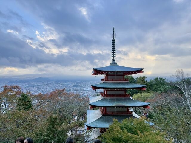 Nous arrivons vers Kawagushiko, notre destination finale, nous montons, nous montons vraiment! à pied voir la pagode. malheureusement aujourd'hui le Mt Fuji n'est pas visible de la haut. ni d'ailleurs! nous avons bien fait de faire notre tour hier.