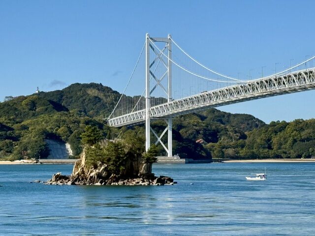 Nous suivons différents itinéraires, certains plus jolis que d’autres, traversons des ponts tantôt suspendus, ou en bétons sur poteaux, les vues sur la mer de Seto et toutes les petites îles sont superbes.