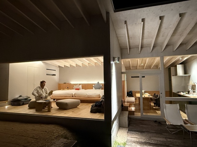 Nous finissons notre première journée et découvrons notre stop du soir. Wouahou. Un bugalow suite immense avec des vitres face à la mer, dans une déco hyper zen et du style nordique