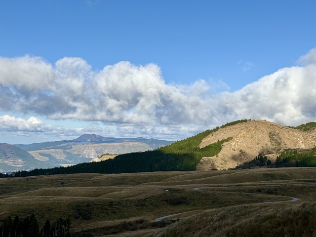 Après un petit déjeuner à la hauteur de notre chambre, nous voici repartis assez tôt découvrir le coté sud et ouest du parc national d'Aso.