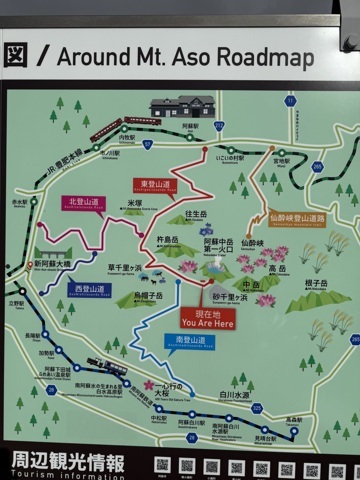 En son centre se trouve le mont Aso constitué lui-même de cinq pics du nom de Nekodake, Takadake, Nakadake, Kishimadake et Eboshidake.