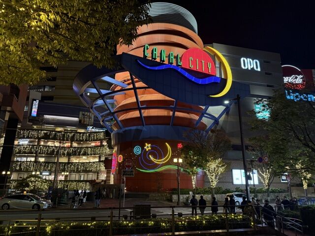Le soir découverte de canal city Hakata et son spectacle eaux et lumières.