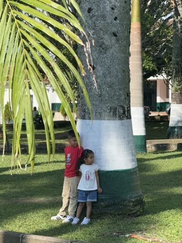 Ce dimanche en cette belle journée ensoleillée, nous apprécions l'agréable place ombragée par ses palmiers, dominée par sa fameuse belle église aux pierres apparentes. (celle qui nous reveille à 4h30 le dimanche mdrrrrrr)