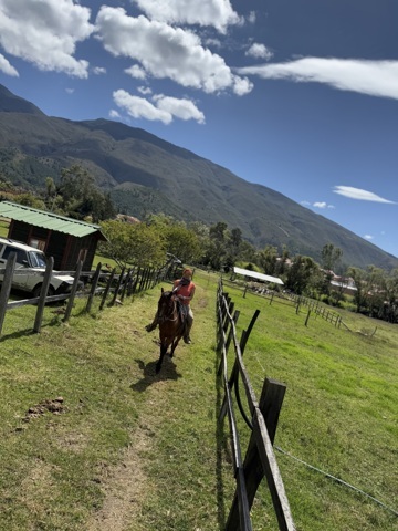 On part tous les trois dans la campagne, d’abord à travers des quartiers avec de magnifiques villas, puis plutôt champêtre et des vues superbes sur Villa de Leyva et les montagne alentours qui pour la plus haute est à 3850 m juste au-dessus de la ville.