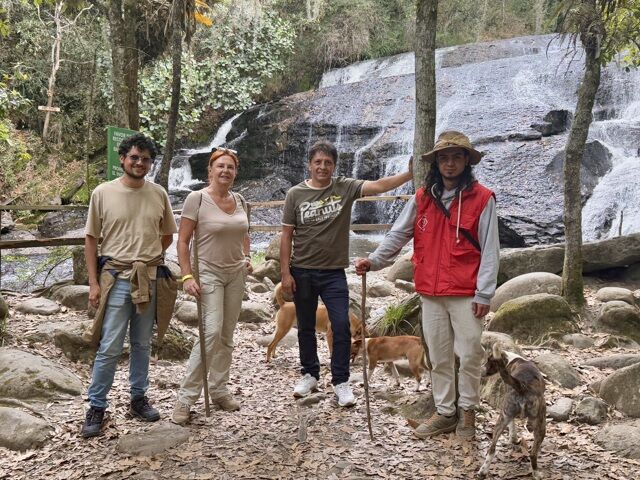 Nous étions bien encadrés, tout d’abord par un guide local, plus Julian notre guide, Faver notre chauffeur (on allait pas le laisser tout seul dans l’auto) et 5 chiens gentils comme tout. Une vraie procession !