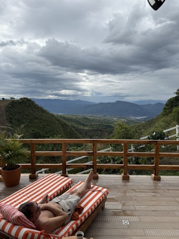 Encore un endroit unique, nous sommes de nouveau seul dans un chalet cabane en bois suspendue sur la foret tropicale, dans une finca de café et cacao à 1400 m d’altitude, en 4 heures de route, le contraste est saisissant entre le désert et la foret semi tropical. Incroyable de contraste, la magie de la Colombie!