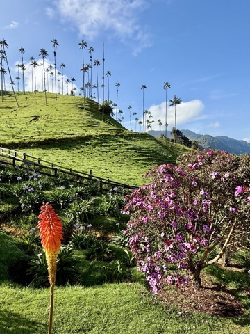 Ce fut une superbe randonnée (environ 12km). Nous avons débuté notre marche par la découverte des palmiers à cire géants, qui nous entouraient tout au long de la montée, paysage à couper le souffle! Ces palmiers sont les plus hauts du monde, et par leur taille (environ 60 metres) et par l'altitude (environ 2700 m)