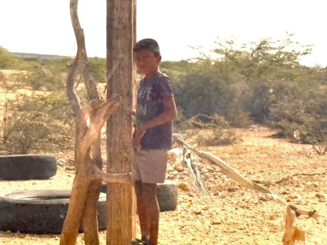 Tout le long de notre remontée sur Punta Gallinas dans le désert de la Guajira, nous croisons de très nombreux « barrages-péages », tenus par des enfants très jeunes, moins jeunes ou des personnes plus âgées.