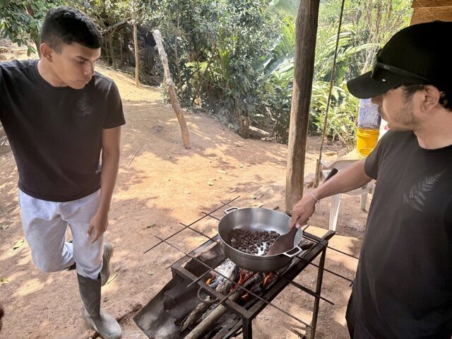 Nous avons été accueillis par la famille qui s’est fait un plaisir de partager avec nous leur manière de vivre et de travailler. Nous avons vu comment le cacao se cultive et nous apprenons la manière dont il se prépare et se cuisine.