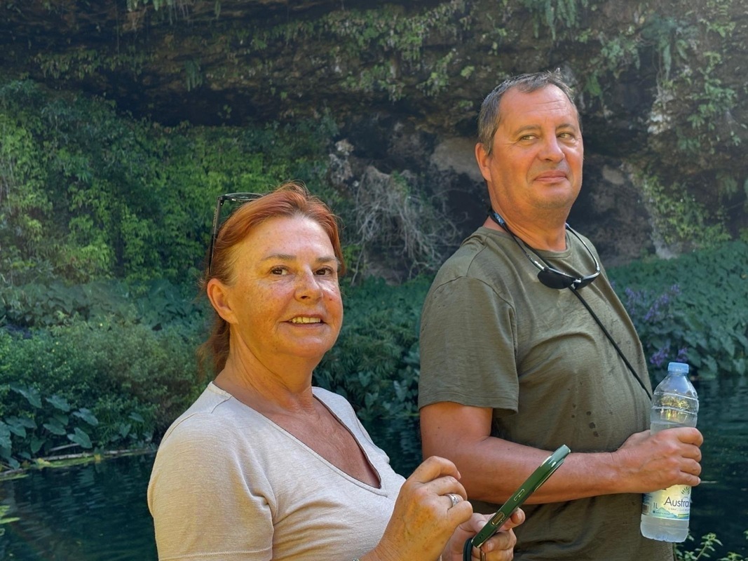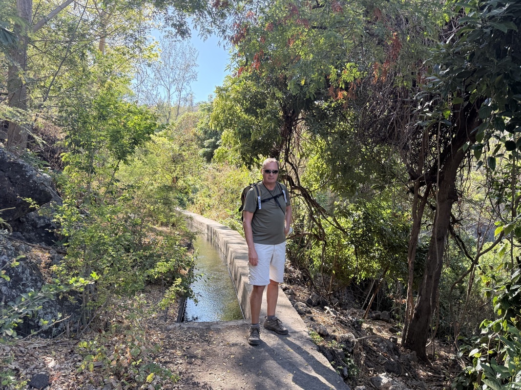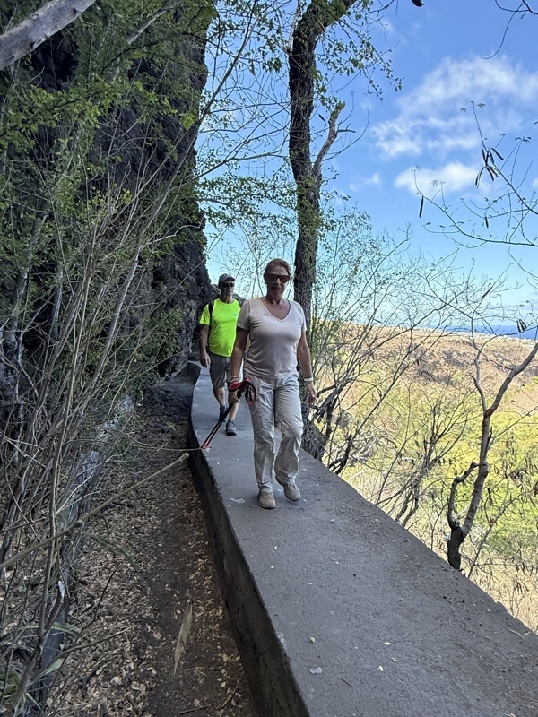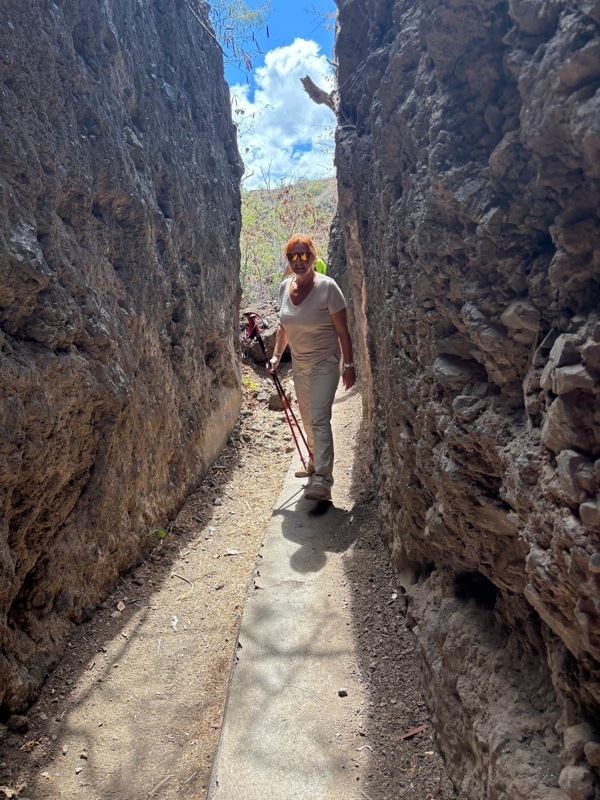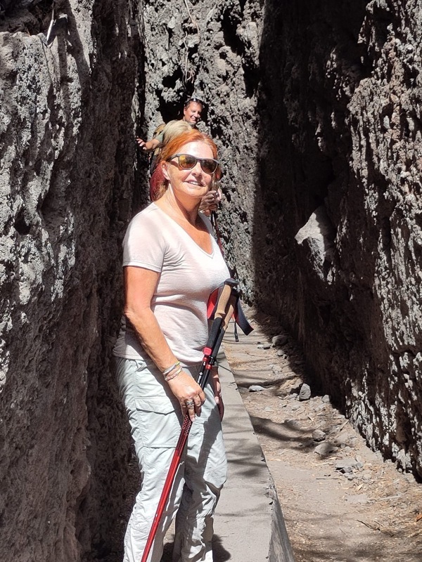 Baignade dans la dernière bassine pour Caro et retour sur un sentier à flanc de falaise, taillé dans la roche avec des passages creusés dans la montagne. Nous n'avions pas encore eu ce genre de décor.