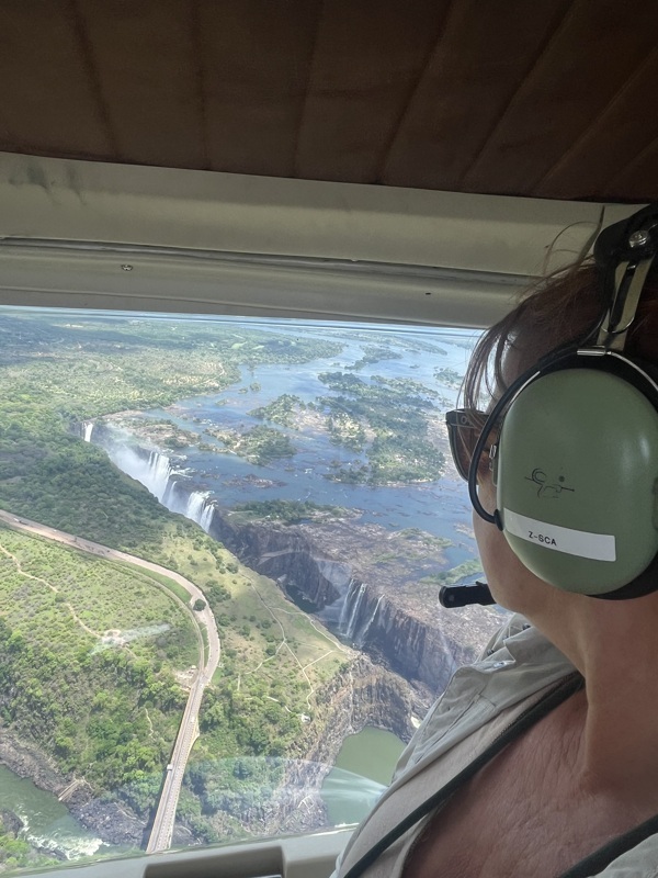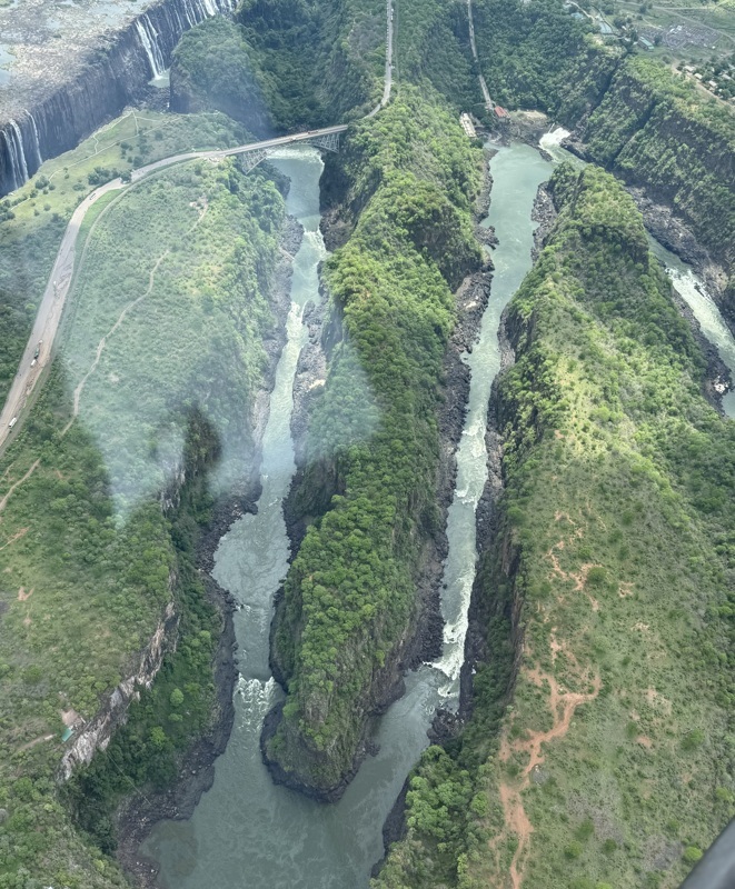 Un petit tour en hélicoptère , la vue est différente évidement et complète notre découverte totale des chutes Victoria