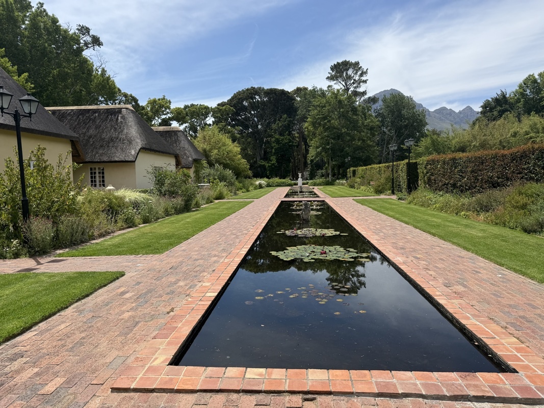 "VERGELEGEN" Nous y déjeunons et visitons les magnifiques jardins qui entourent les batisses aux toits de chaume. superbes. Un déjeuner succulent.