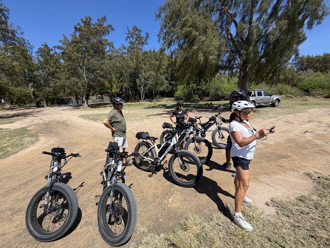 Il est vrai que ces vélos qui viennent des USA ne sont pas en vente en France. Les nôtres sont bridés à 25 Km/h, ceux-ci à 110 km/h !!! donc ses explications sont aussi et surtout concernant la sécurité. On nous équipe des casques et d’oreillettes pour qu’il puisse communiquer les dangers et ses instructions au fur et à mesure de la balade, et nous dans le sens inverse aussi.