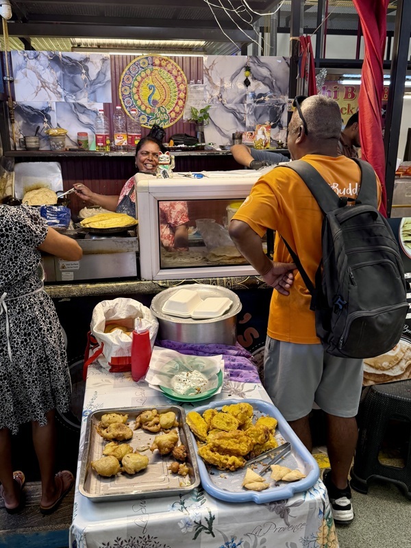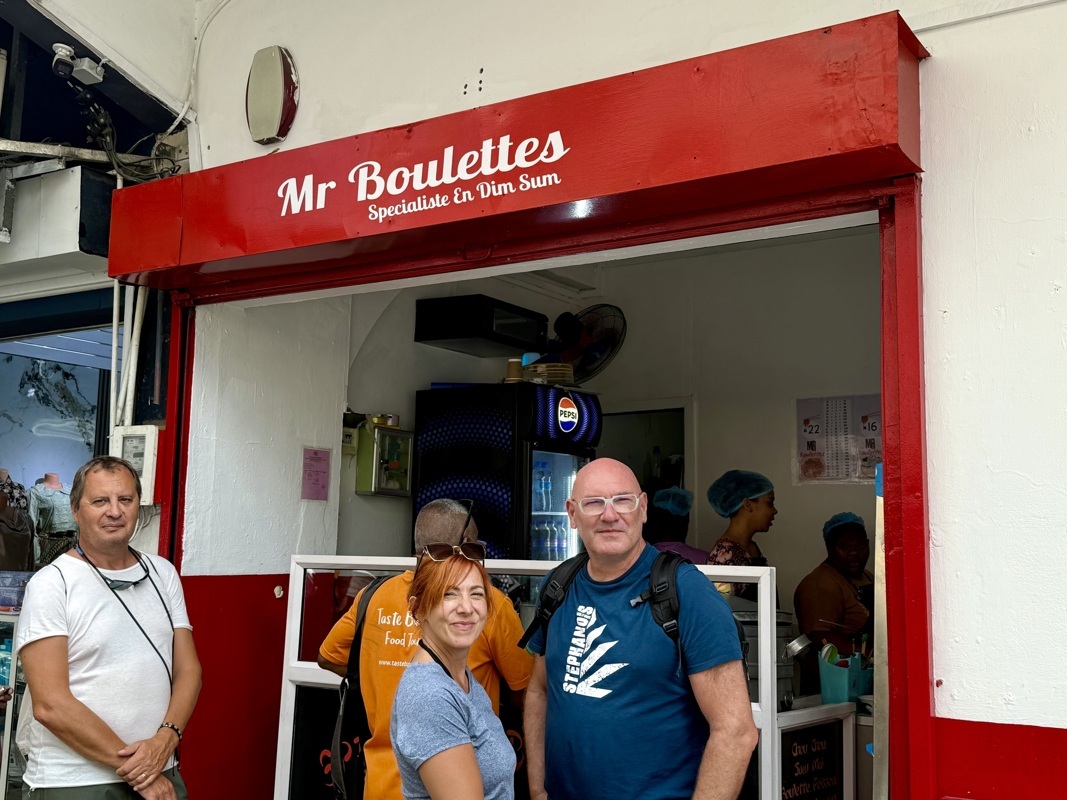 Aujourd’hui était consacré à la découverte de la capitale, Port Louis. À 10h30, nous retrouvons notre guide (et son fils qui est en vacances scolaires) pour un Street Food Tour qui s’annonce haut en saveurs.