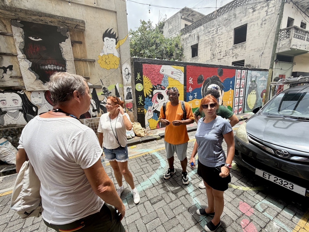 Tout au long de la visite, Christophe nous parle avec émotion de ce qui fait, selon lui, la force de l’île Maurice : sa capacité à faire cohabiter des communautés d’origines et de religions différentes — indiens, africains, arabes, chinois ; chrétiens, hindous, tamouls, musulmans.