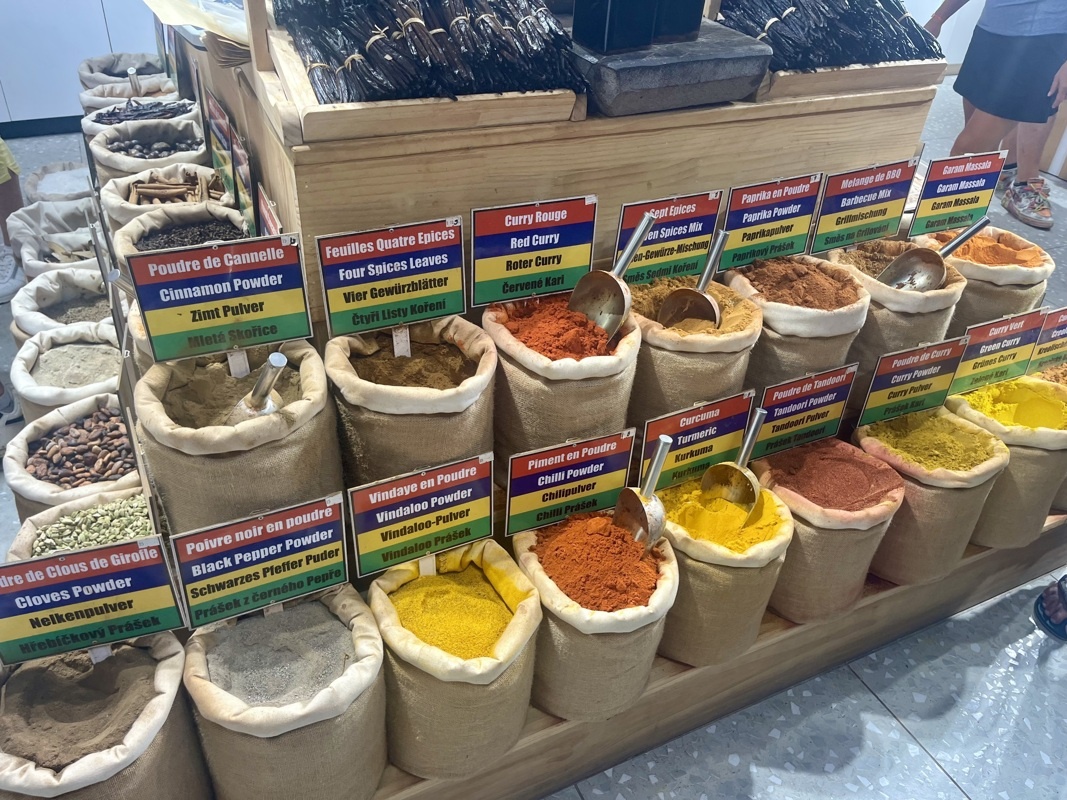 Le tour se termine au marché aux épices, véritable explosion de couleurs, d’odeurs et de saveurs. Curcuma, piments, tisanes, vanille… un voyage sensoriel à lui seul.