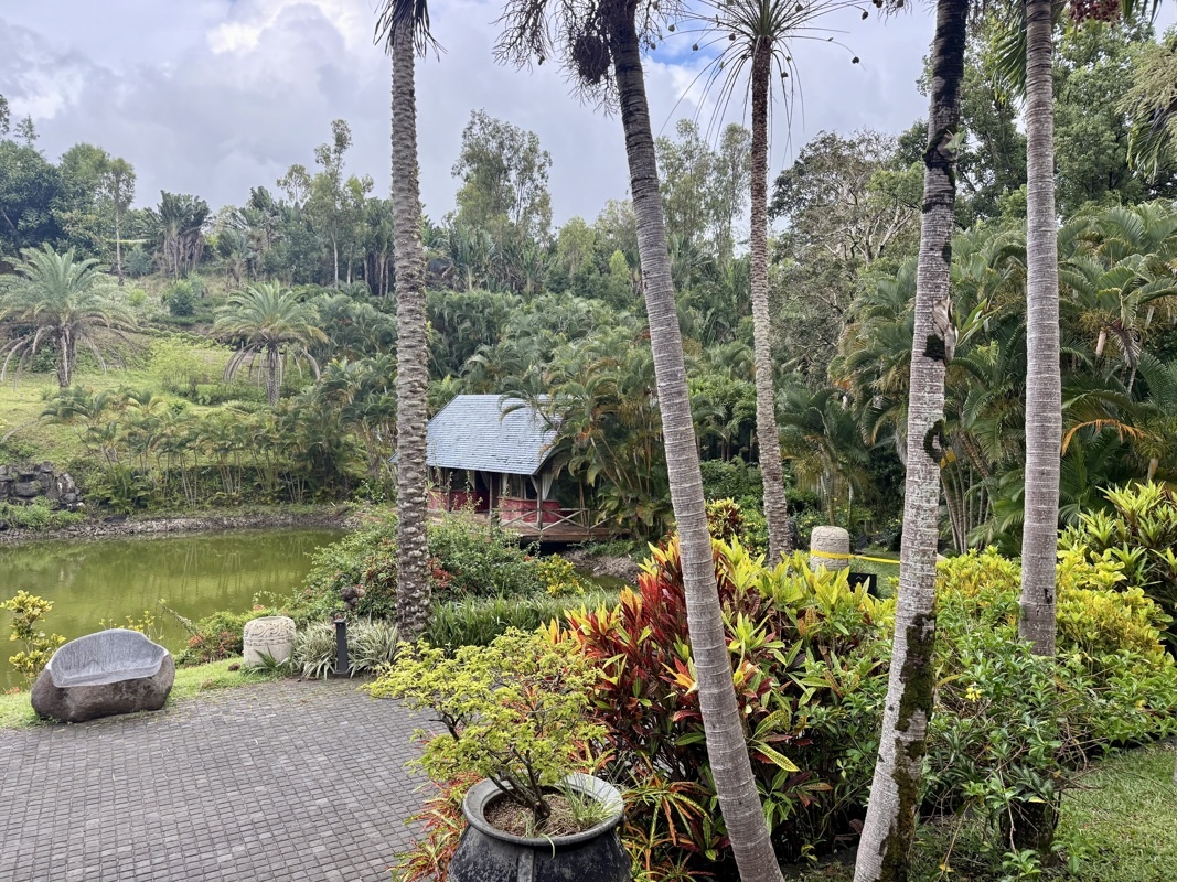 Notre nouvel éco lodge est dans une sorte de jardin botanique avec une vue magnifique sur la cote du Morne