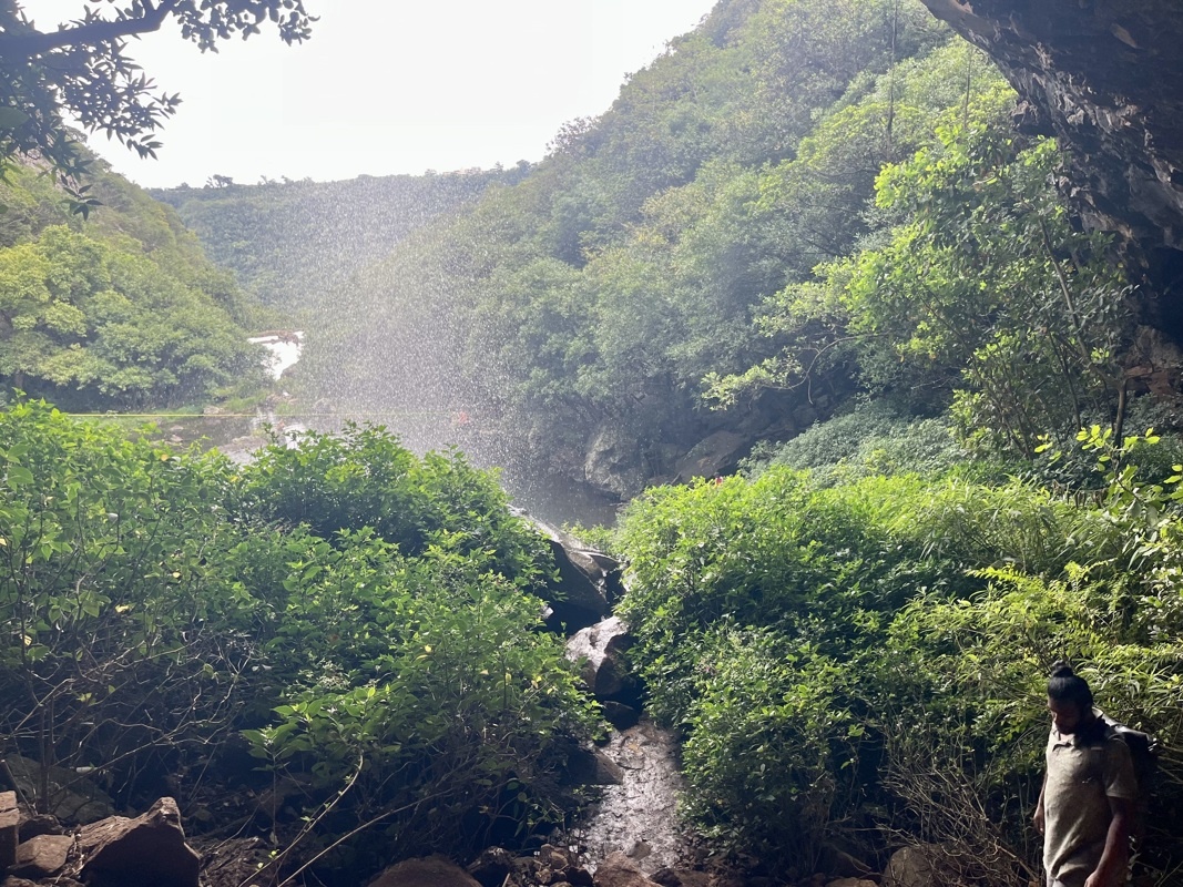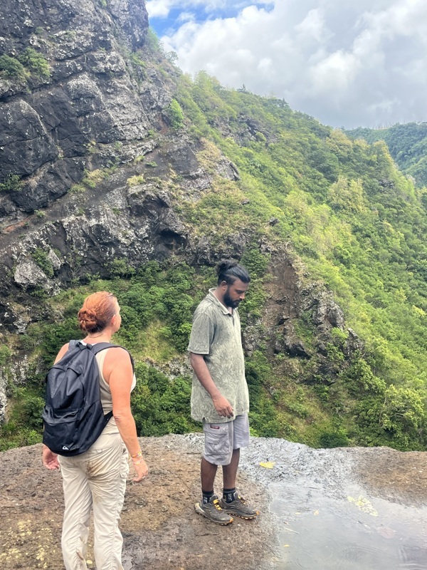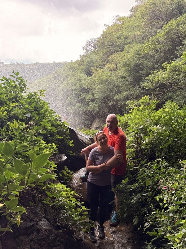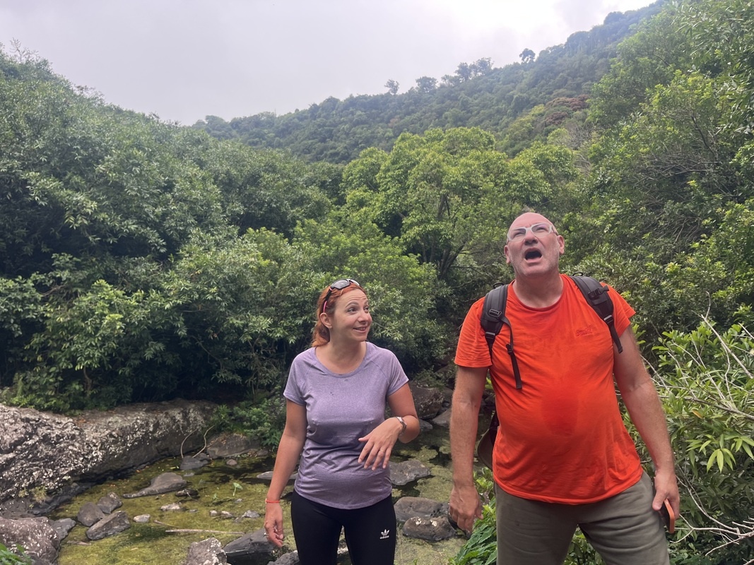 Ce matin, départ pour la randonnée des sept cascades (nous n’avons prévu que d’en faire 4 en 4 heures) avec notre guide Arveen. Au petit déjeuner, Arveen nous averti aussitôt que la météo change très vite ici. Il nous prévient aussi que certains passages seront très pentus à la descente comme à la montée. Nous sourions… mais nous n’allons pas sourire longtemps.