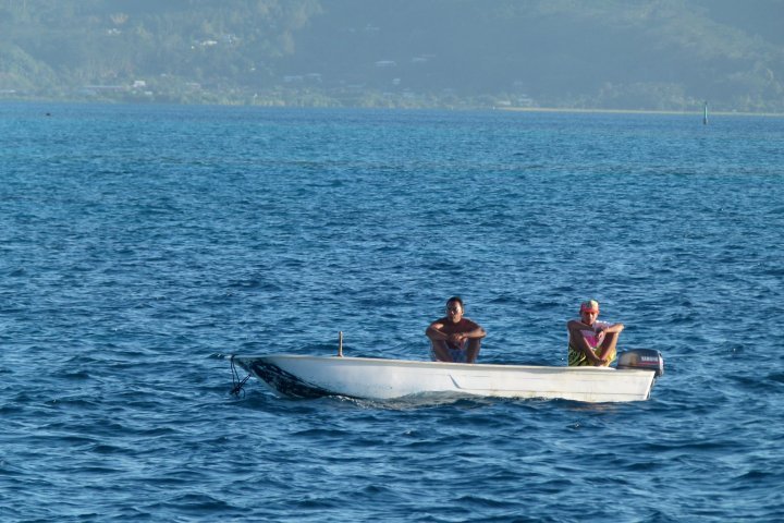 Nous levons l'ancre pour nous rendre sur l'île de Taha, accompagné par le catamaran Kappa.