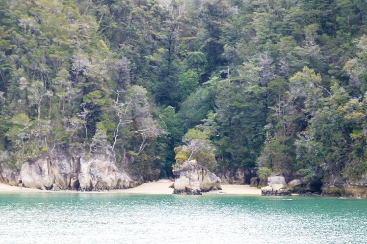 Pas grave, nous avons visité aujourd'hui le parc national Abel Tasman en bateau (pas accessible en voiture), cela aurait été plus lumineux avec un beau soleil, tant pis.
