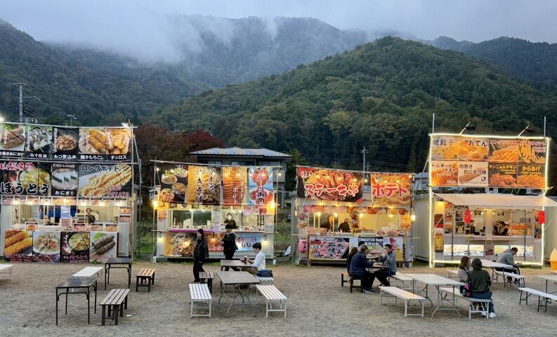 après avoir déposé nos affaires à l'hotel face au mont Fuji, celui qu'on ne voir pas aujourd'hui, nous redescendons au bord du lac pour une fin d'après midi street food et artisanat. marrant.