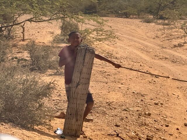 Tout le long de notre remontée sur Punta Gallinas dans le désert de la Guajira, nous croisons de très nombreux « barrages-péages », tenus par des enfants très jeunes, moins jeunes ou des personnes plus âgées.