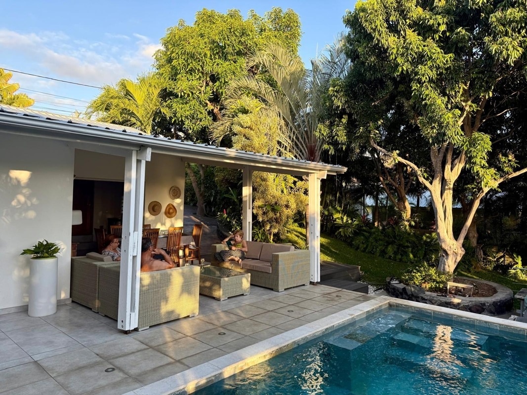 Dejeuner dans un restaurant à Saline les bains, les pieds dans le sable, l'eau du lagon à environ 26°.