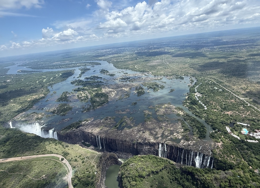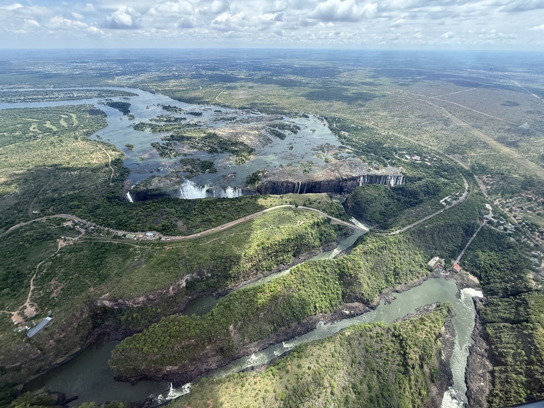 Un petit tour en hélicoptère , la vue est différente évidement et complète notre découverte totale des chutes Victoria