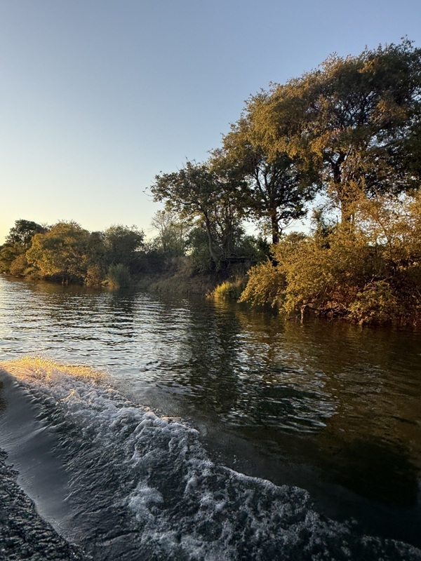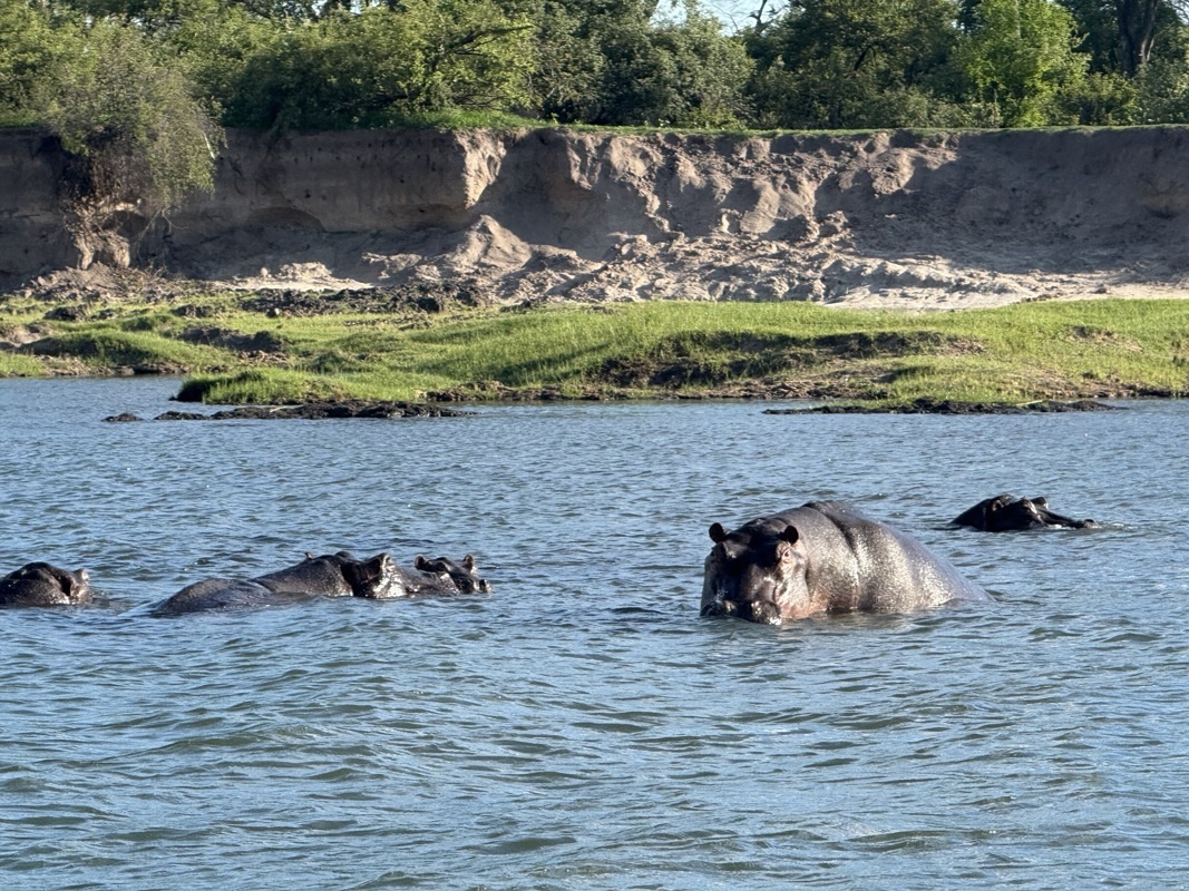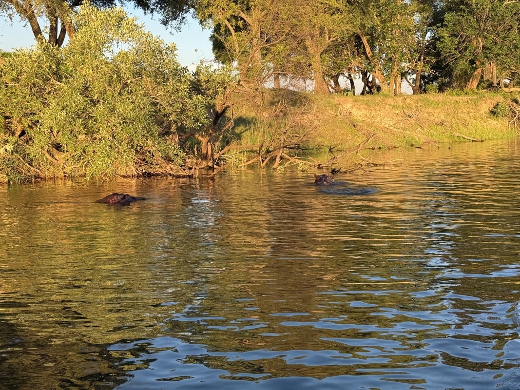 En fin d'après midi nous repartons cette fois ci par bateau au départ de notre glamping lodge pour longer la rivière Zambèze et apercevoir ses habitants.