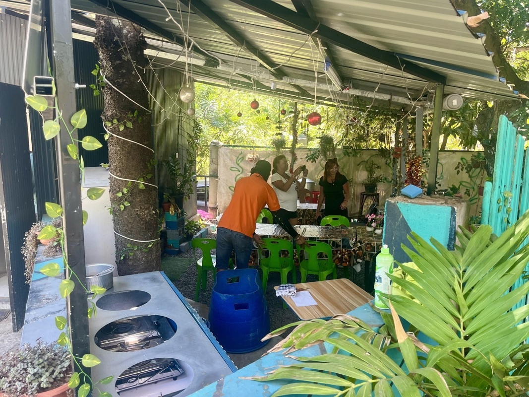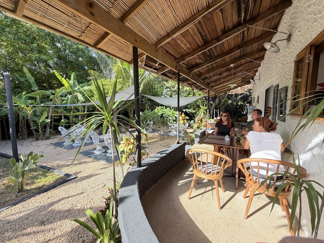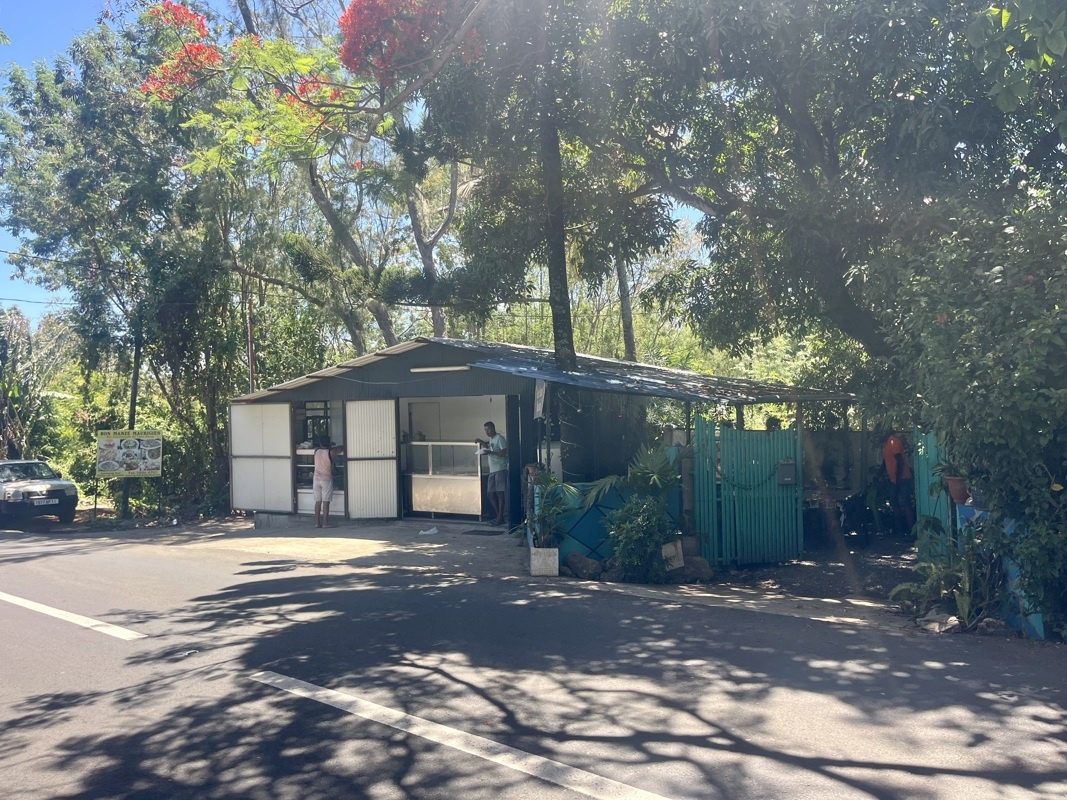 Un resto en bord de route, plutôt à emporter avec quelques tables de jardin et toiles cirées derrière une palissade. Chez « Bon Manzé Maurigien »