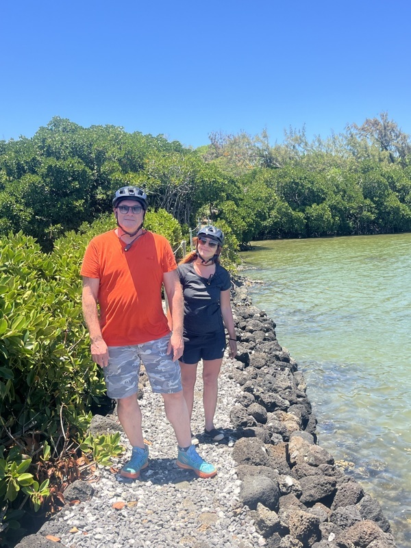 Et on découvre au fil des heures une autre personne. C’est un ancien patron marin pécheur de gros bateau (hors barrière de corail), pendant plus de 20 ans. Il a vendu son matériel et son entreprise au Covid. Il a investi dans ces vélos il y a deux ans et propose ce tour atypique. Il a une grosse connaissance de la mer, des animaux, de la nature, de la mangrove qu’il faut préserver pour l’écosystème.