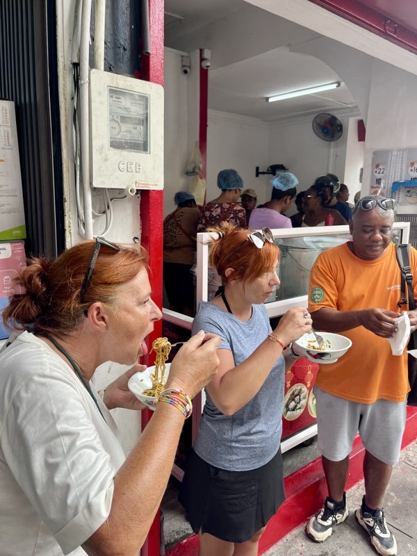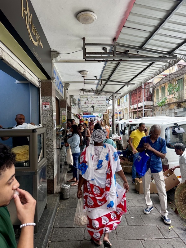 Aujourd’hui était consacré à la découverte de la capitale, Port Louis. À 10h30, nous retrouvons notre guide (et son fils qui est en vacances scolaires) pour un Street Food Tour qui s’annonce haut en saveurs.