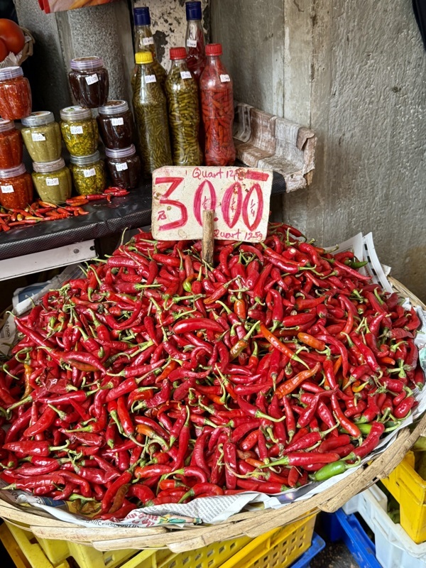 Quelle profusion de nourriture et de couleurs! Ville qui semble grouiller de monde! Belle leçon de tolérance toutes ces ethnies mélangées! On en est loin chez nous!