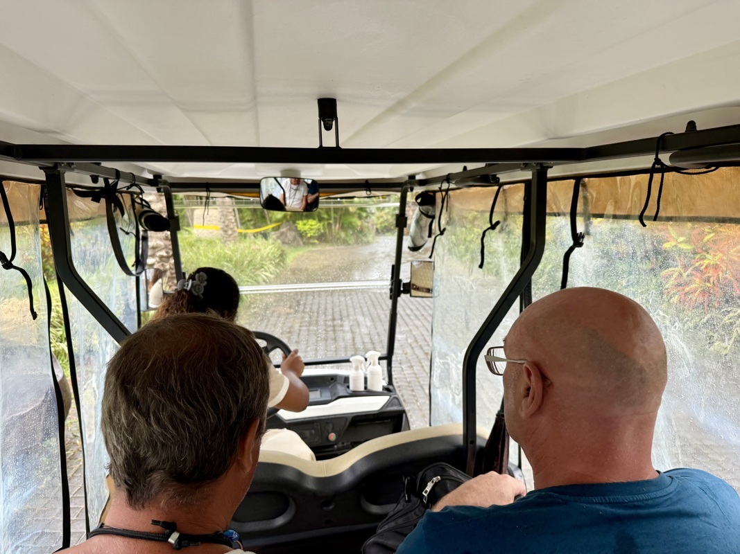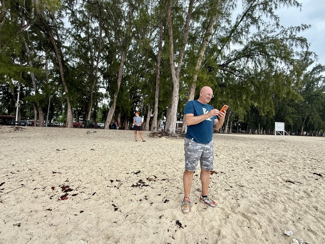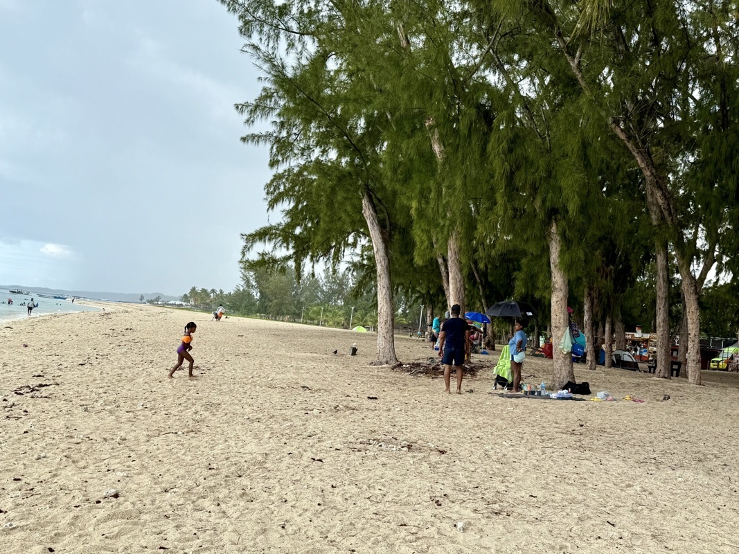Nous faisons un arret sur la plage de Flic en Flac, mais il pleut donc nous ne nous sommes pas baignés. Ce sera pour un autre jour.