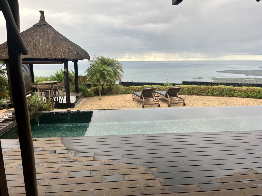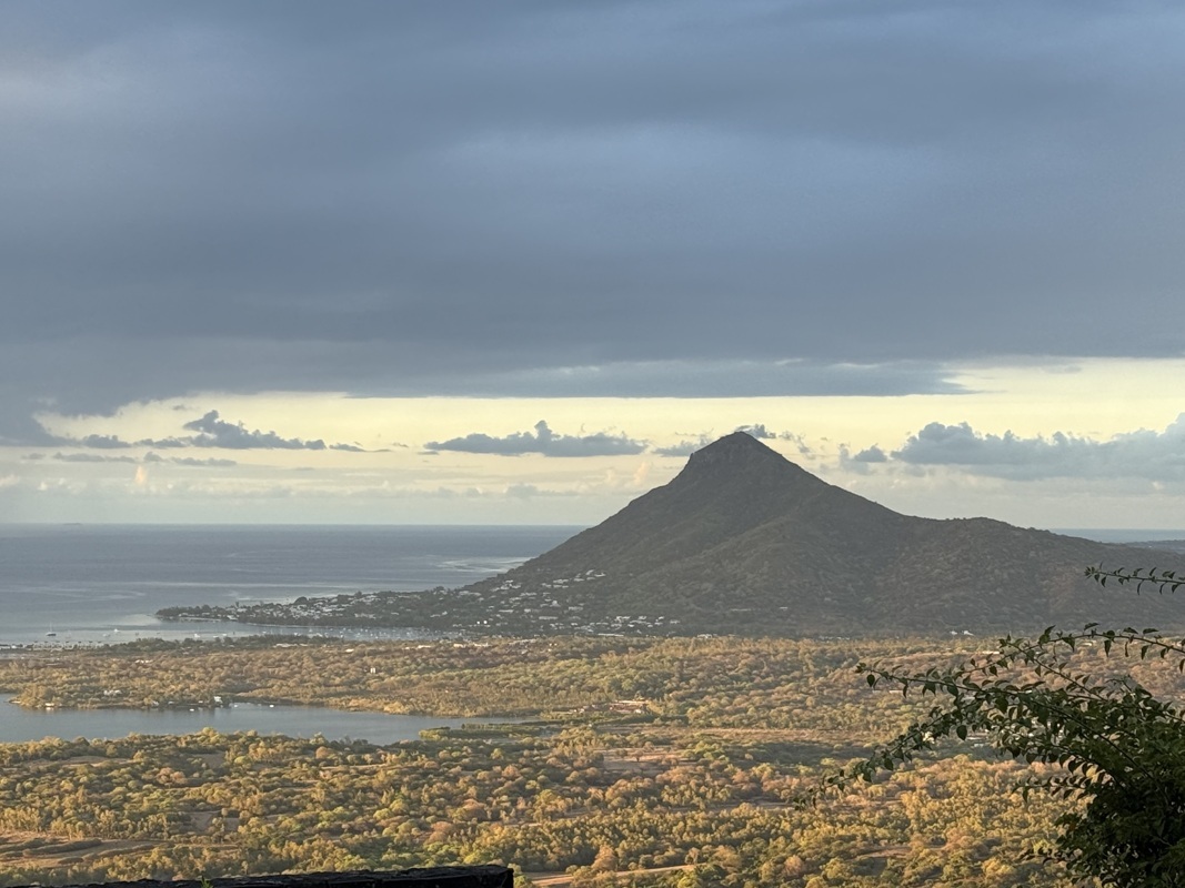 Notre nouvel éco lodge est dans une sorte de jardin botanique avec une vue magnifique sur la cote du Morne