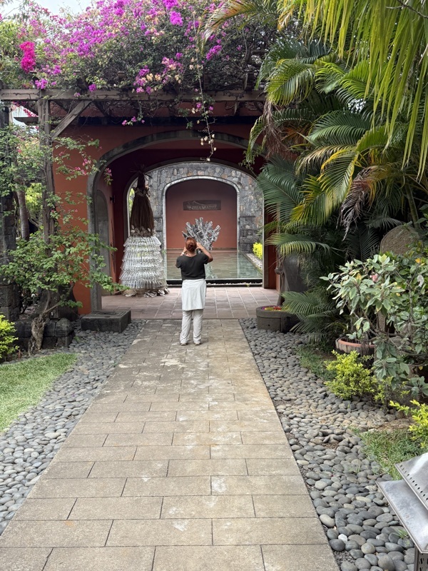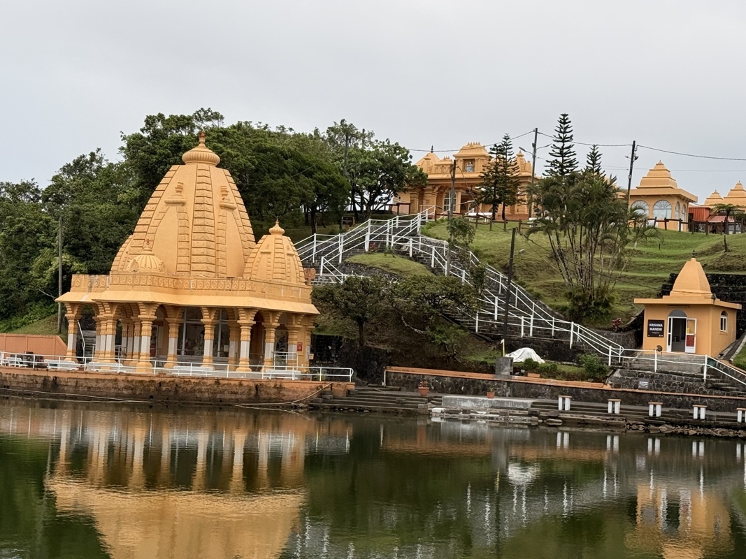 Notre journée commence au temple de Ganga Talao, posé au bord du lac sacré, enveloppé d’encens et de prières. Nous y croisons quelques singes malicieux perchés dans les arbres et avons la chance d’assister à de touchantes offrandes familiales, déposées avec une simplicité désarmante. Un moment suspendu, profondément mauricien.
