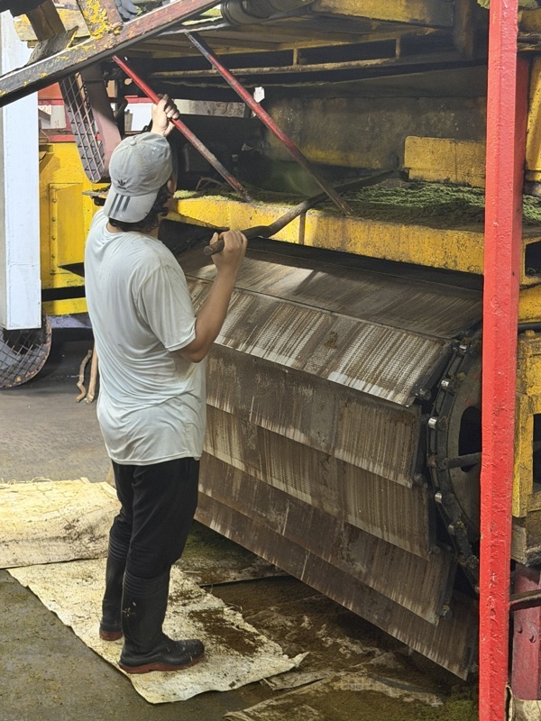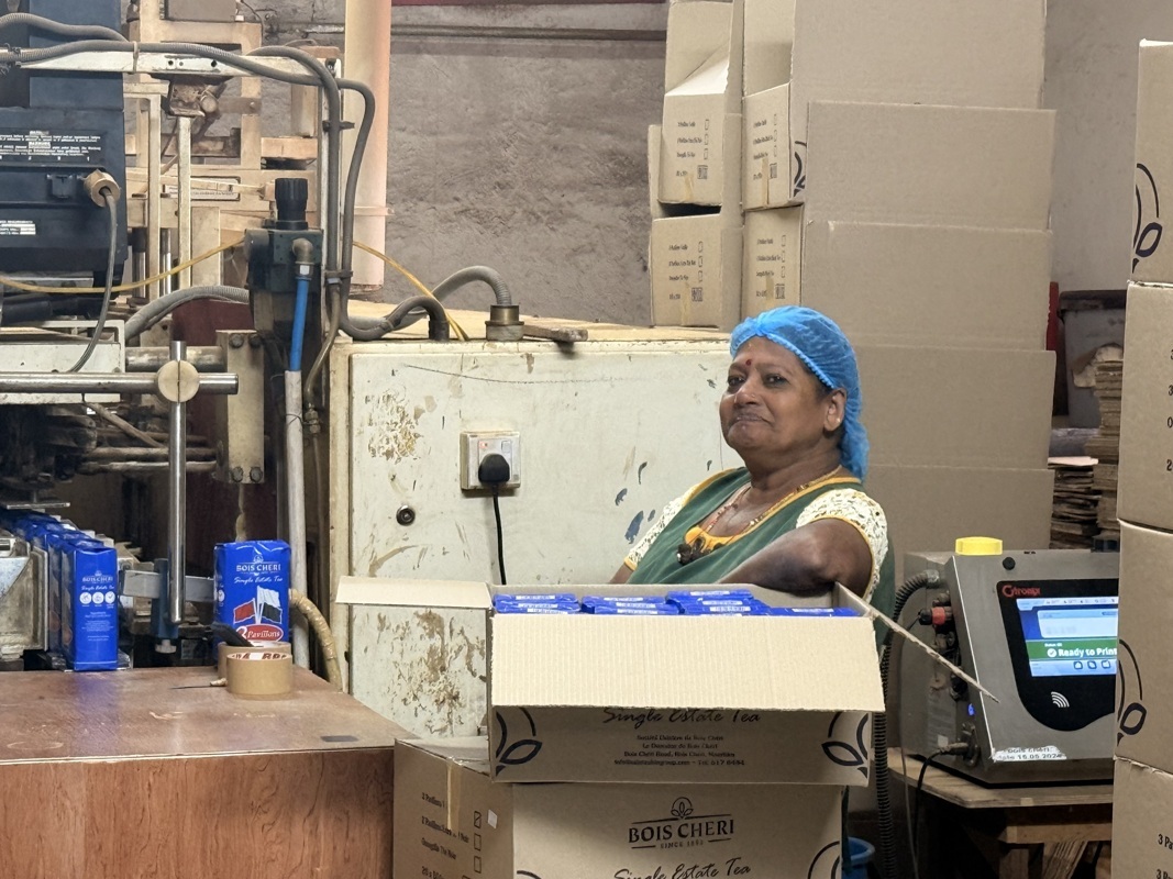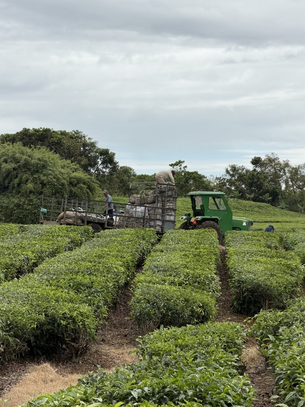 Nous reprenons la route pour rejoindre Bois Chéri, où nous découvrons l’univers du thé. L’usine fonctionne encore à 100 %, dans une ambiance qui rappelle la France des années 50 : machines entièrement mécaniques, équipements simples, normes de protection très éloignées de celles que nous connaissons.
