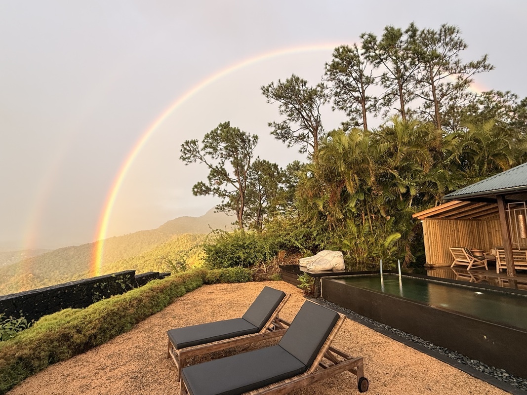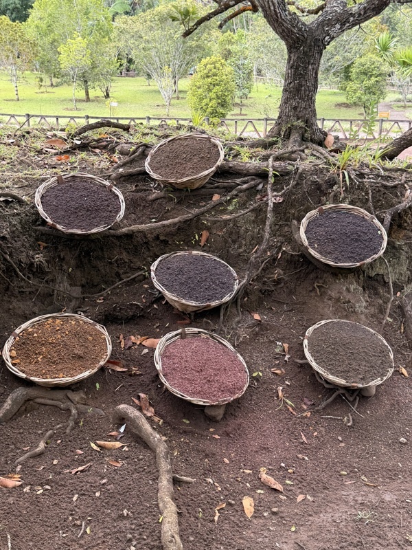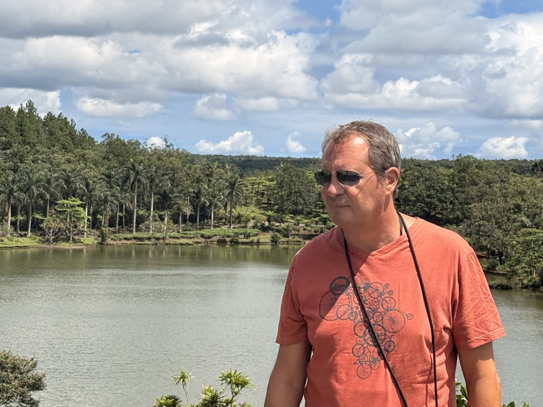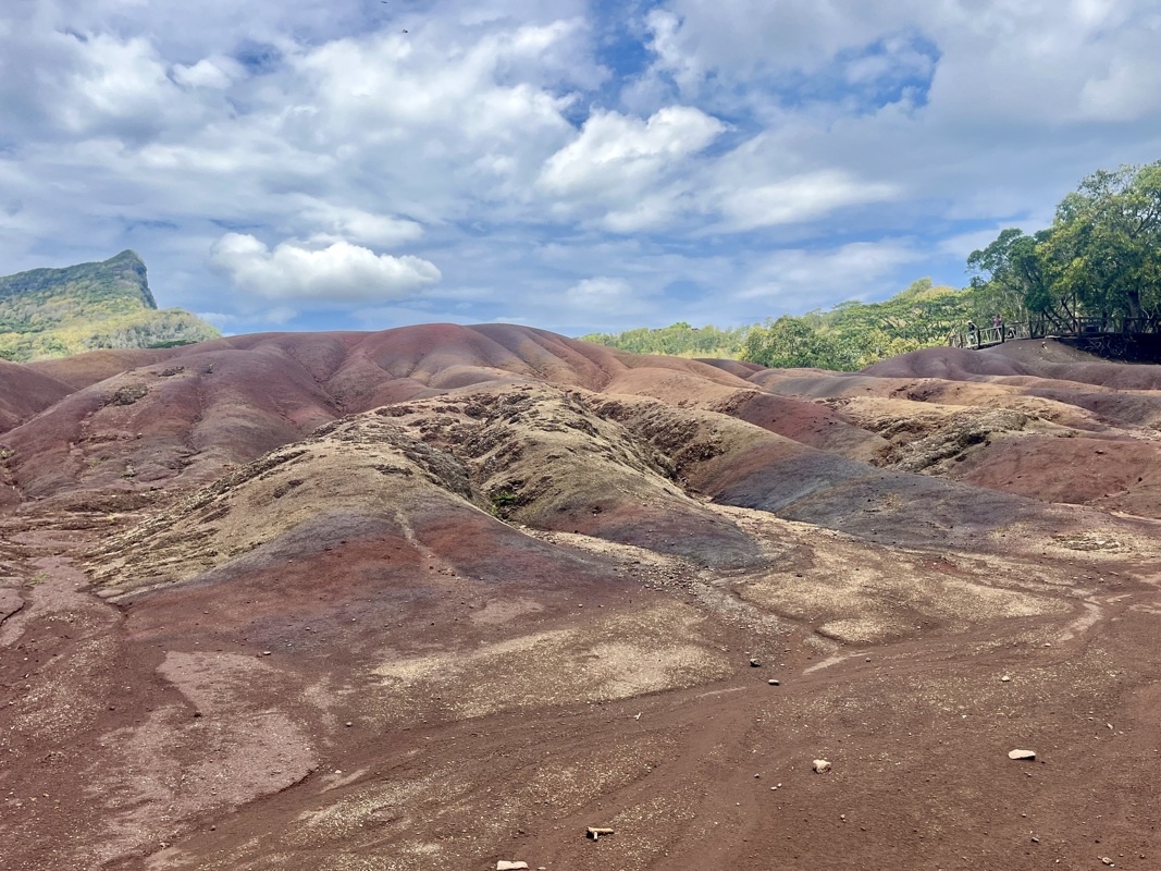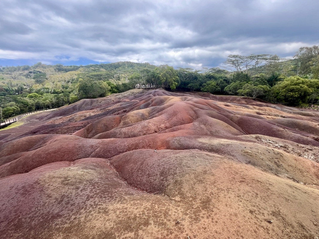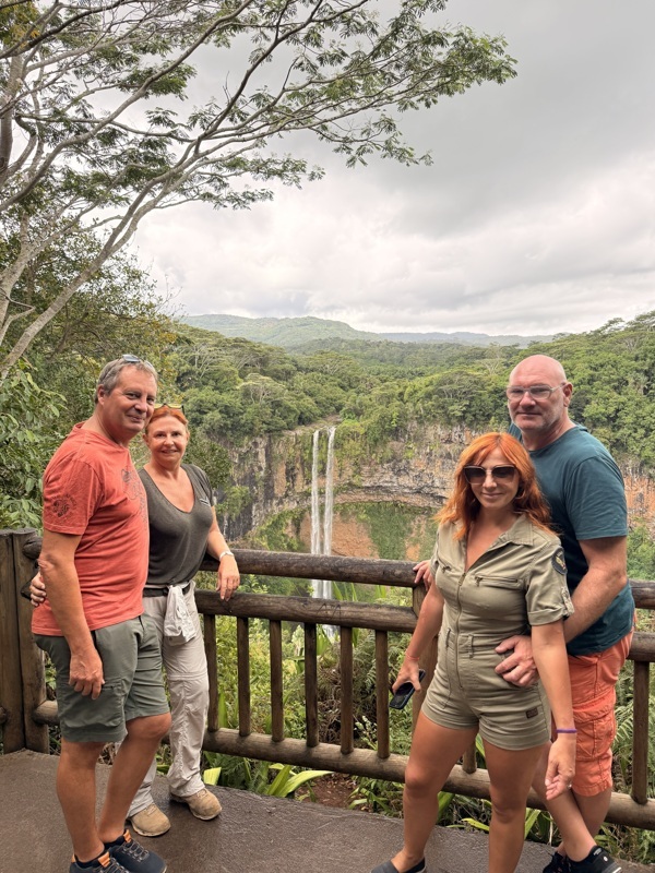 Par chance le temps tient toujours — pas une goutte de pluie, un miracle. Nous poursuivons vers les Sept Couleurs de Chamarel et la grande cascade, la plus haute de l’île avec ses 100 mètres. C’est beau, impressionnant même, mais très organisé, très touristique… loin de l’authenticité que nous aimons tant depuis le début du voyage.
