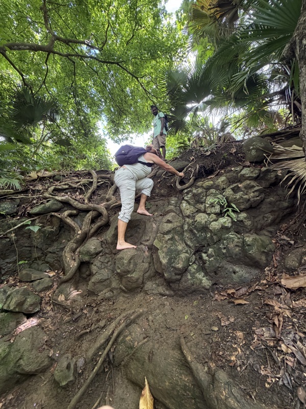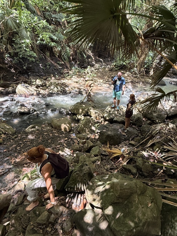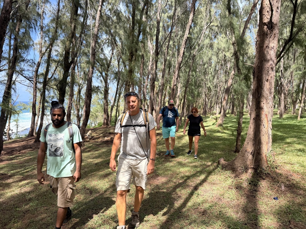 Ce dimanche, plus clément, nous retrouvons Arveen, notre guide des cascades de Chamarel, pour une randonnée annoncée comme facile, d’environ deux heures, dans le sud de l’île.