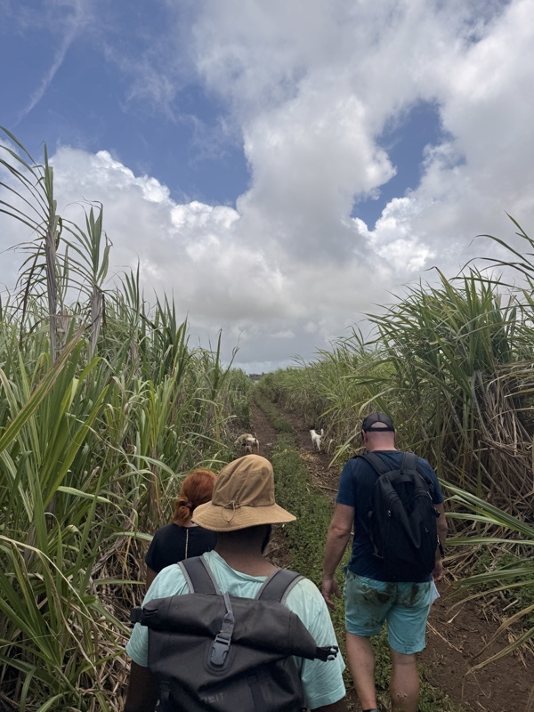 Quelques averses supplémentaires viennent ponctuer la fin du parcours. Nous traversons ensuite des champs de canne à sucre pour rejoindre la route, où nous attrapons un taxi local afin de retourner à notre parking.