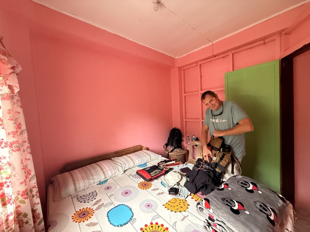 Nous avons checké avec lui ce qu’il fallait prendre dans nos sacs à dos pour les 2 nuits chez l’habitant et guest house.