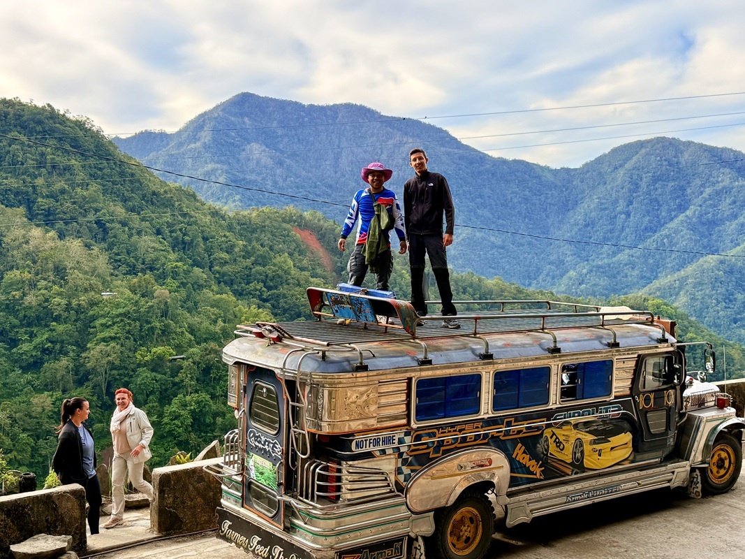 Le matin venu, Elmer vient nous chercher avec un fameux bus jeepney (jeep de l’armée américaine rallongée)