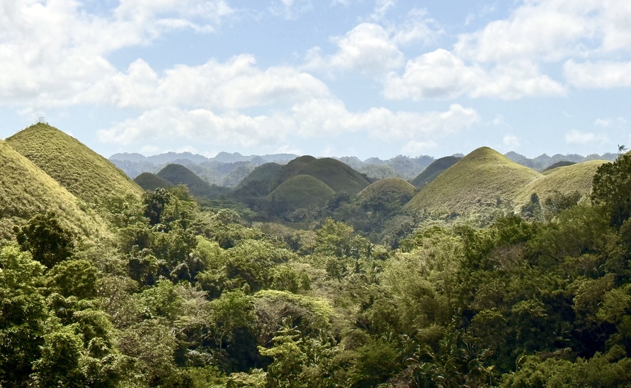 Notre première étape sera les célèbres Chocolate Hills, ces centaines ( plus de 1200 sur 50 km2) de collines arrondies qui se parent d’un brun chocolat en saison sèche et offrent un paysage unique au monde classé au patrimoine de l’Unesco.
