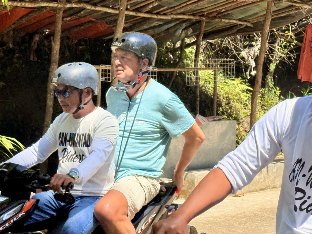 Pour y accéder nous montons sur 4 motos/scooteurs et nos pilotes nous y amène en 10’ seulement (au lieu de 45’ à pied)