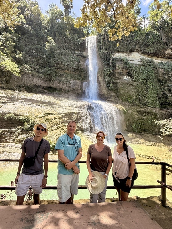 Très belle photo devant la cascade. C'est inédit et à garder précieusement. Très beaux paysages verdoyants et variés. Les "chocolate hills" sont quand même classées au Patrimoine de l'UNESCO. En effet, c'est un paysage insolite...On les croquerait!!!