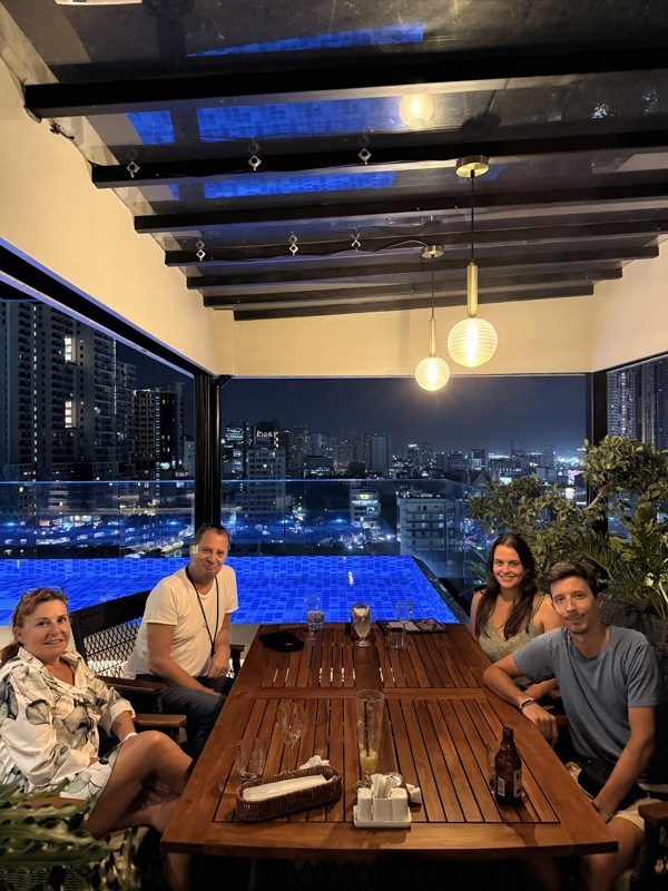 Nous passerons une dernière belle soirée sur un joli rooftop non loin de notre hôtel (le nôtre ressemblait plus à un bâtiment d’ėtat chinois géré par des chinois pour des chinois…… pdj inclus)