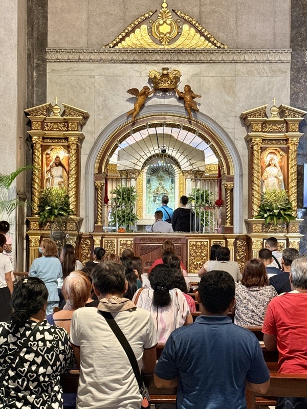 Avant cette « séparation » programmée de longue date, visite de Cebu, deuxième ville urbaine des Philippines. Et bien tout comme la première Manille, rien à voir de particulier, hormis le fort San Pedro, ancienne fortification espagnole qui jouxte la Plaza Independencia, la croix de Magellan, témoignage symbolique de l’arrivée des Espagnols aux Philippines et enfin la basilique Santo Niño, la plus ancienne église du pays où est conservée la célèbre statuette de l’Enfant Saint. Cette icône rapportée par Magellan, est au centre d’une ferveur religieuse impressionnante.